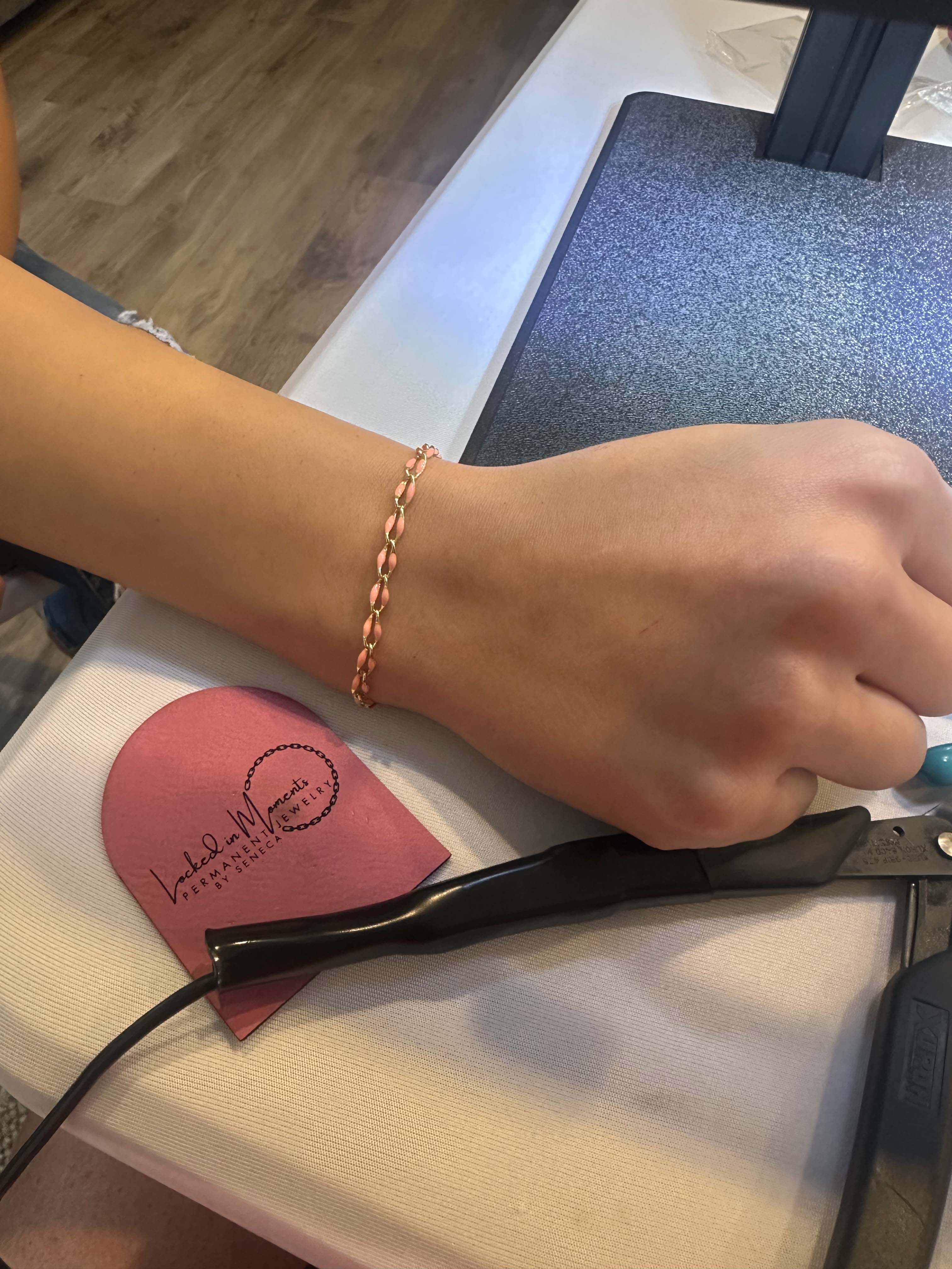 We bring permanent jewelry to the moments you want to remember—whether it’s a quiet one-on-one appointment or a full room of friends.