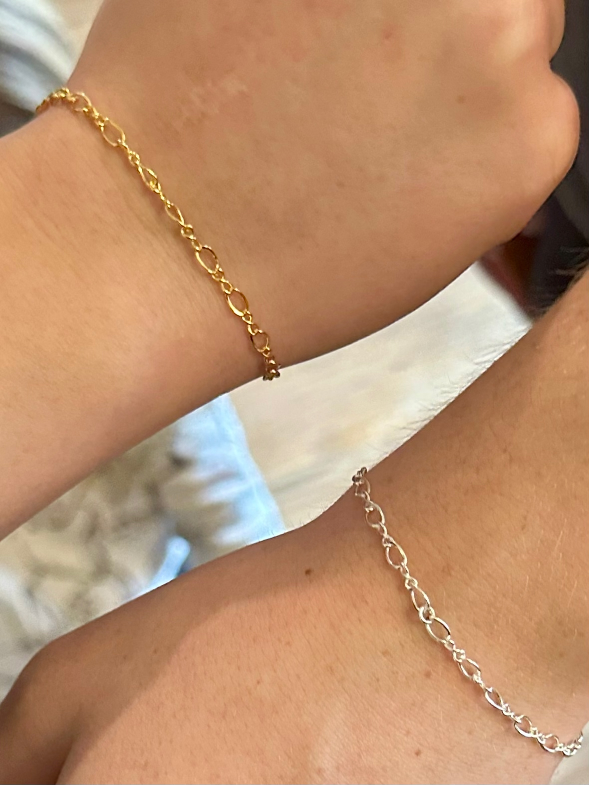 Delicate chains custom-fitted to your wrist. Perfect for stacking or a single minimal statement.