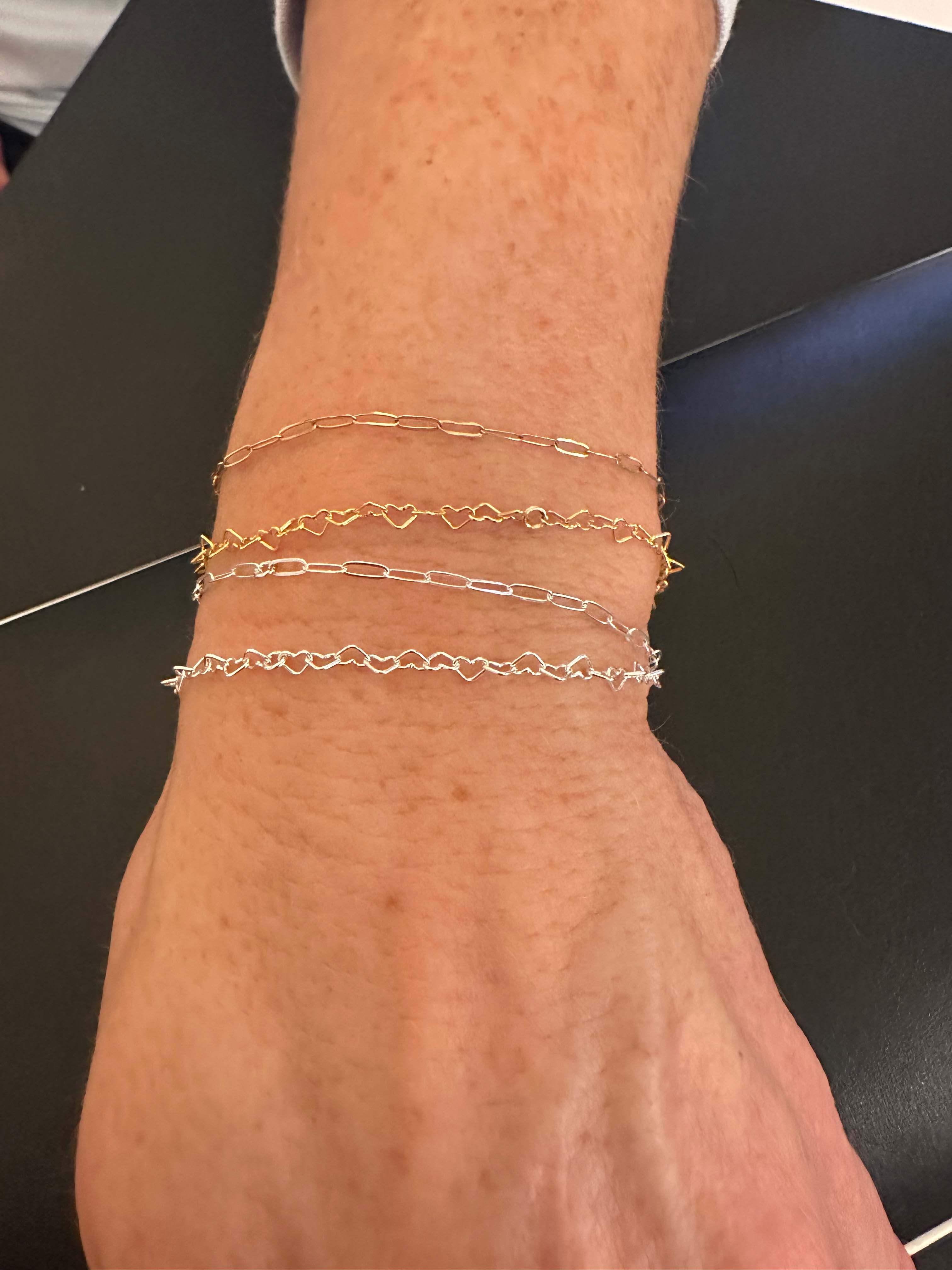 Permanent jewelry is a custom-fitted chain that is safely welded closed instead of being secured with a traditional clasp. The result is a delicate piece you never have to take off—perfect for everyday wear, special moments, or matching with someone you love.